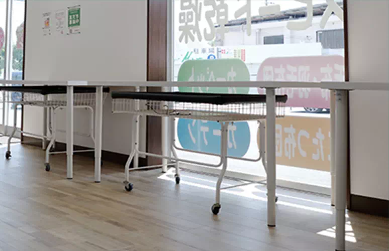 店内には大きなテーブルを設置して、大量の洗濯物や大きな洗濯物もストレスなくたためるようにしています。