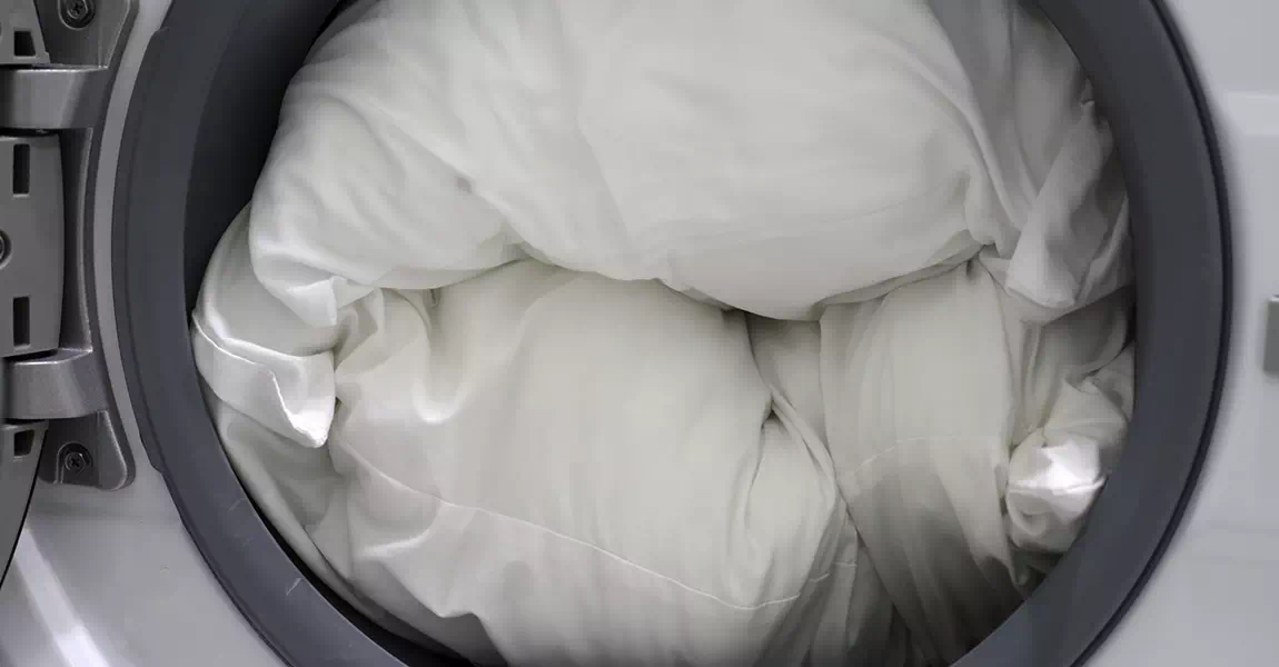 - A 通常は洗えますが、ドライマークや手洗い表示のもの、布団の中綿が寄らないようにキルティング加工が施されているものは洗えませんのでご注意ください。